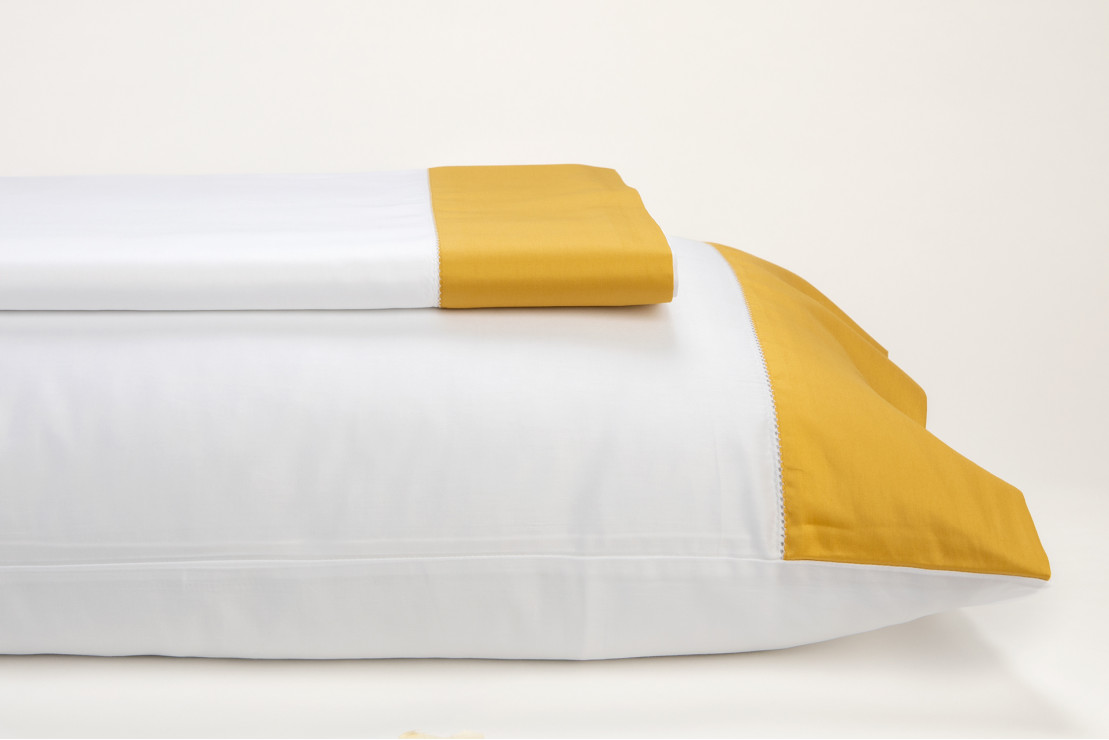 Lençol Branco c/ Vies a uma cor Almofadas : 170x290- 1 Almofada 45x105 240x290- 2 Almofadas 50x75 270x290- 2 Almofadas 50x90 100% Algodão Percal 200 Fios